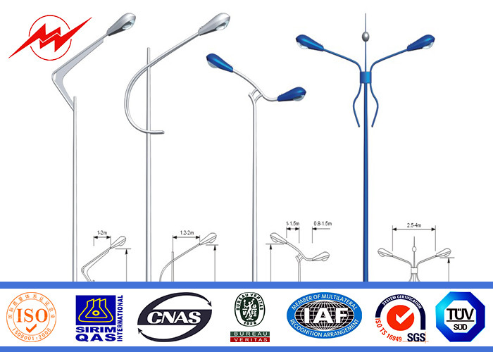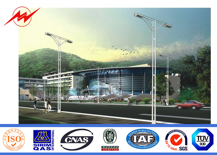 Solar 2.75mm 12m Dual Outreach Galvanized Steel Pole for Road Lighting 0